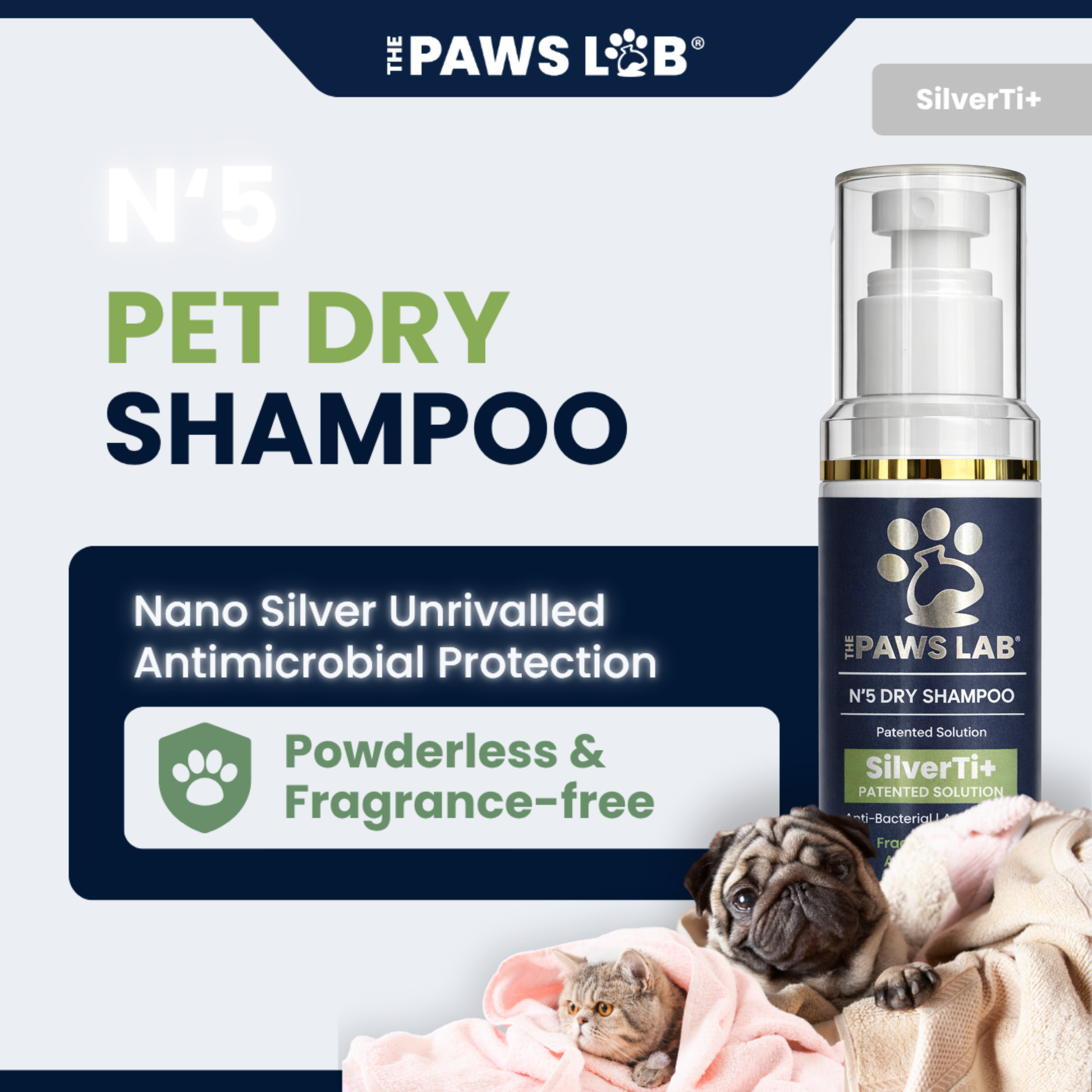 Our N’5 Dry Shampoo is the perfect solution for refreshing your pet’s coat without the need for water. Powered by SilverTi+, it gently removes odors, viruses, and bacteria, while promoting a healthy and shiny coat. This alcohol-free, non-toxic formula is safe for all skin types, including sensitive skin, and leaves your pet smelling fresh and clean. Whether at home or on the go, it’s the ultimate grooming essential for keeping your furry companion looking and feeling their best.